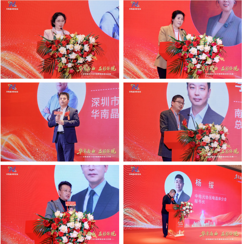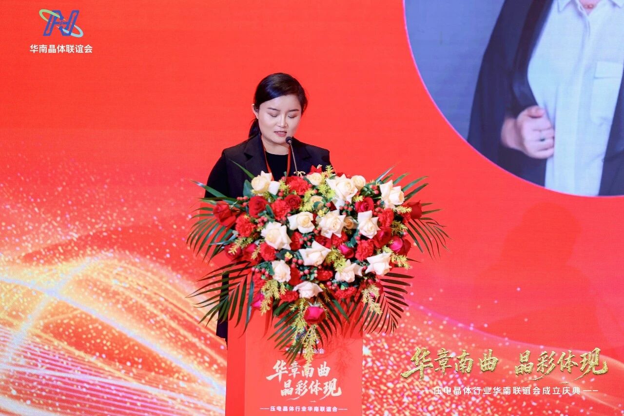 大会伊始,广东惠伦晶体科技股份有限公司营销中心副总经理韩雪代表承办方及会长单位致辞,并向与会嘉宾表示热烈欢迎。随后,中电元协压电晶体分会秘书长武平、深圳市电子商会常务副会长兼秘书长徐慧英、华南晶体联谊会组委会会长孙刚等嘉宾分别发表致辞,共同表达了对协会未来发展的期待与信心,希望以此次成立为契机,凝聚行业力量,携手开创共赢新局面。